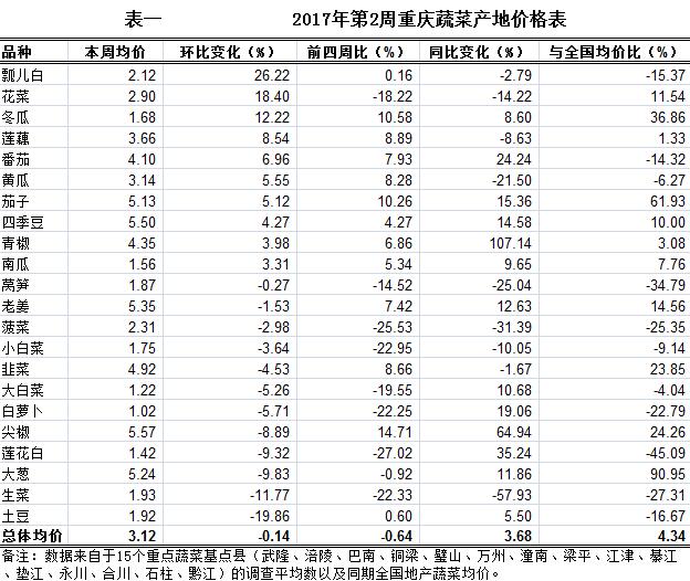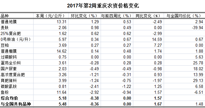 重庆农产品及农资价格周报2017年第2期(总第420期)