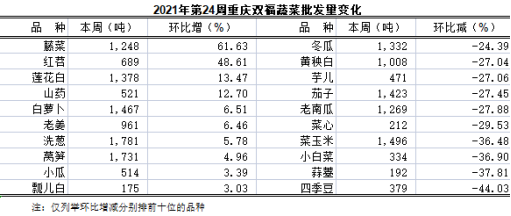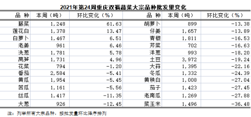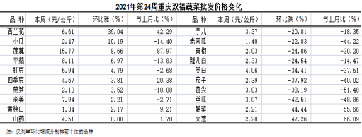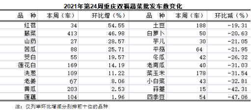 重庆蔬菜批发交易周分析2021年第24期(总254期)