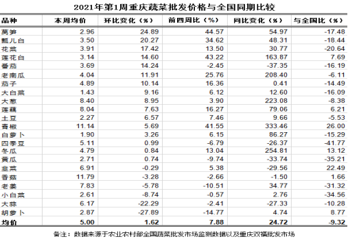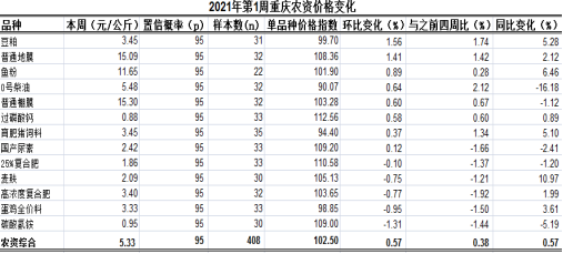 重庆农产品及农资价格周报2021年第1期(总628期)