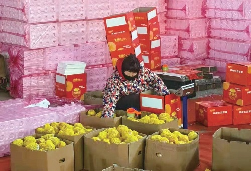 合作社架构的“前店+后仓+农户”电子商务发展模式,构筑起了种植、仓储、销售一体化的生鲜电商供应链条。据合作社理事长赵学升介绍,“前店”是依托公司的电商网店,通过各种网上销售渠道,把合作社的水果和其他农产品销售出去。“后仓”是依托合作社的冷藏保鲜库和中转包装基地,17座冷库仓储群集聚储藏了当地各类特色果品、农产品和周边省市不同地区的时令水果,形成显著的仓储优势。“农户”则依托合作社现有2000多农户的3万多亩的果品种植基地。