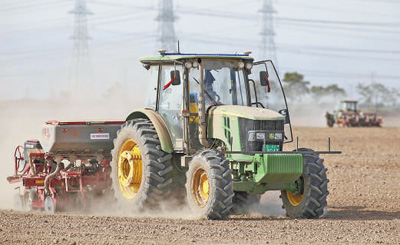 宁夏农垦集团前进农场,无人驾驶机械在北斗导航系统的辅助下播种。