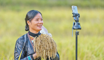 贵州省从江县高增乡,村民通过网络直播推介特色糯米。