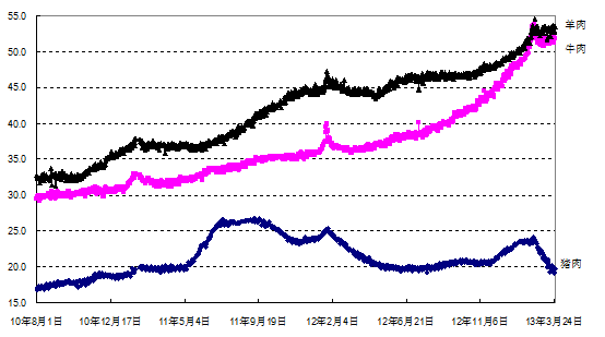 2013年第12周国内外农产品市场动态——国内多数鲜活农产品价格保持稳定 猪肉水果价格略有下跌