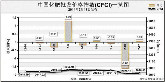 2014年2月17日中国化肥批发价格综合指数(CFCI)为2028.85点