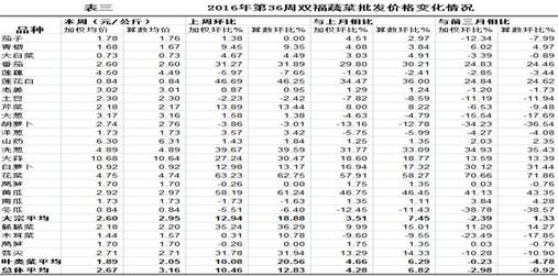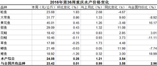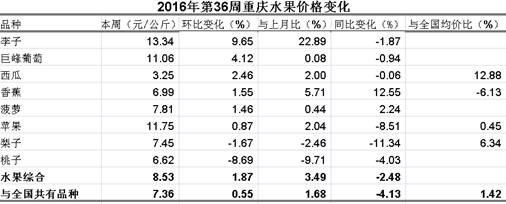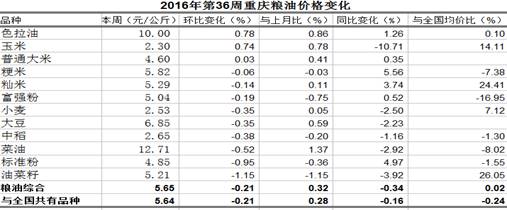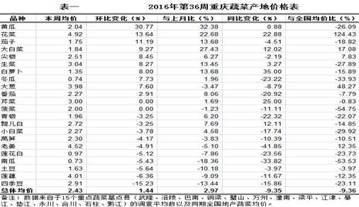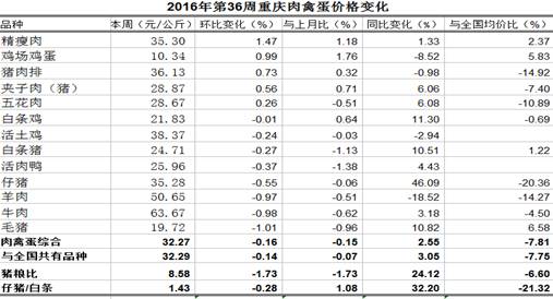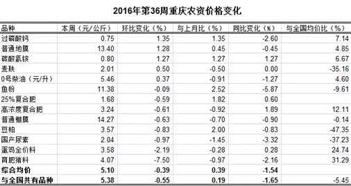 重庆农产品及农资价格周报2016年第36期(总第401期)
