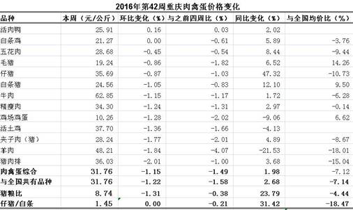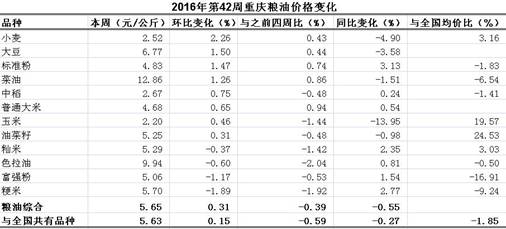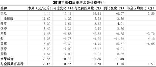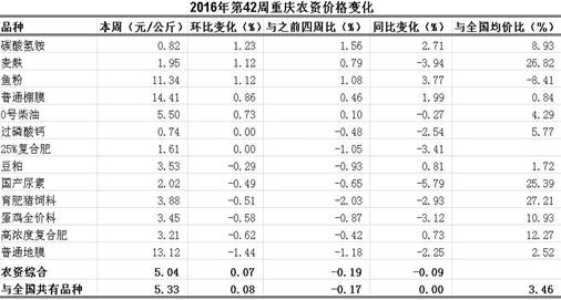重庆农产品及农资价格周报2016年第42期(总第407期)