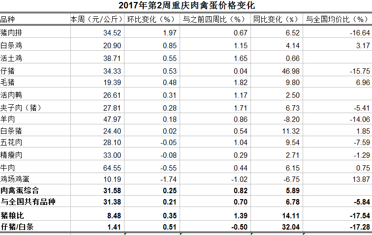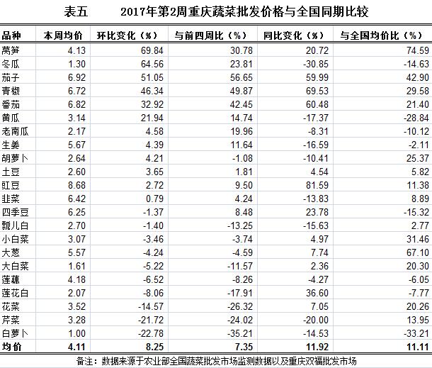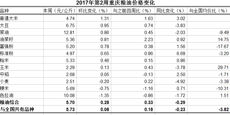 重庆农产品及农资价格周报2017年第2期(总第420期)
