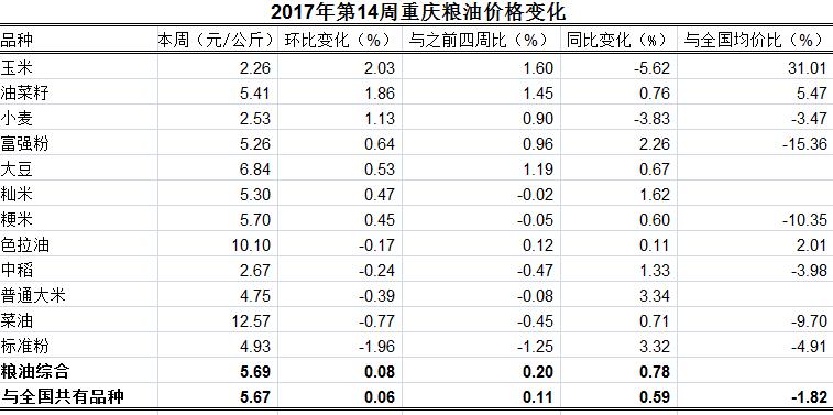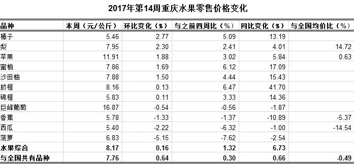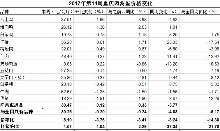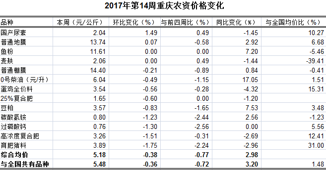重庆农产品及农资价格周报2017年第14期(总第432期)