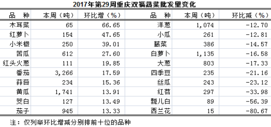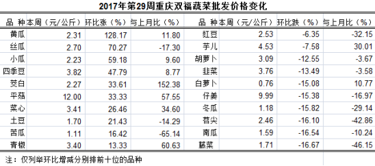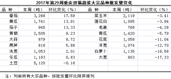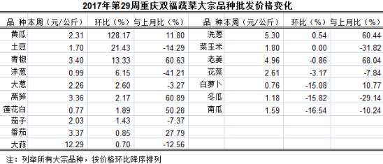 2017年第29周重庆双福国际农贸城周交易分析
