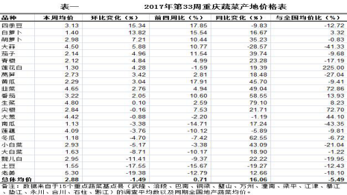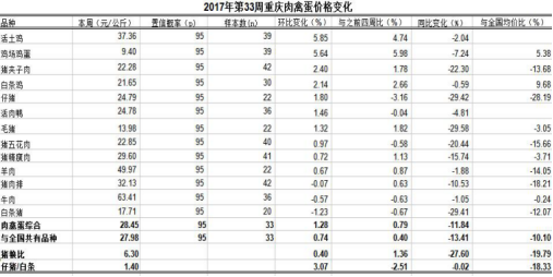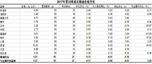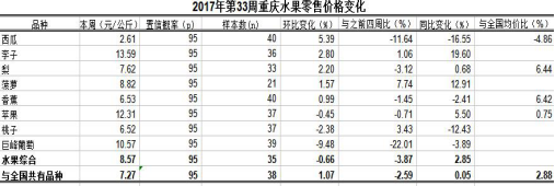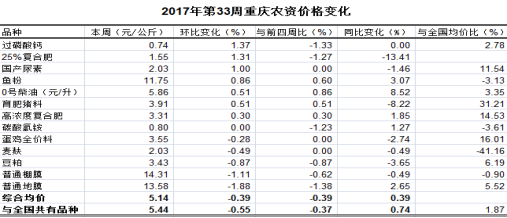 重庆农产品及农资价格周报2017年第33期(总第451期)