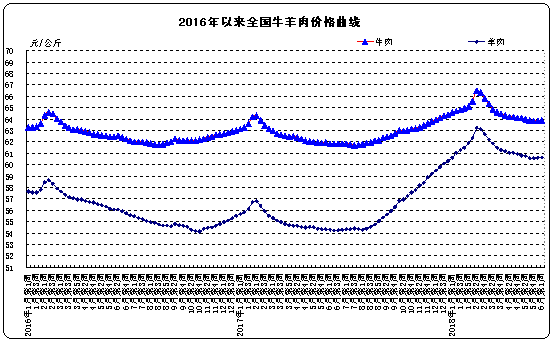 牛羊价格。全国牛肉平均价格63.87元/公斤,与前一周持平,同比上涨3.3%。河北、辽宁、吉林、山东和河南等主产省份牛肉平均价格58.35元/公斤,比前一周上涨0.1%;上海、浙江、福建、广东和江苏等省份平均价格73.74元/公斤,与前一周持平。全国羊肉平均价格60.63元/公斤,与前一周持平,同比上涨11.7%。河北、内蒙古、山东、河南和新疆等主产省份羊肉平均价格59.73元/公斤,比前一周上涨0.1%;上海、浙江、福建、江西和广东等省份平均价格64.1元/公斤,比前一周下降0.4%。