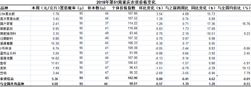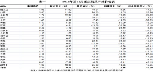 重庆农产品及农资价格周报第51期(总第521期)