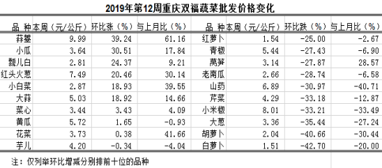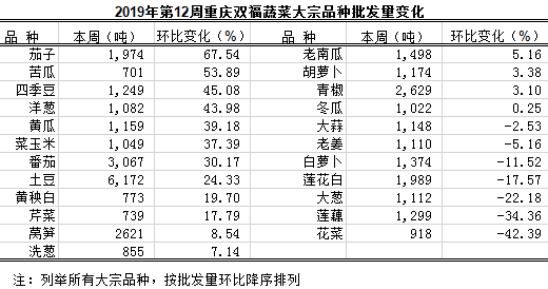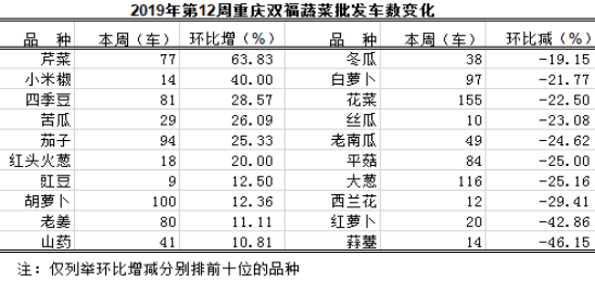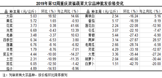 重庆蔬菜批发交易周分析2019年第12期(总137期)