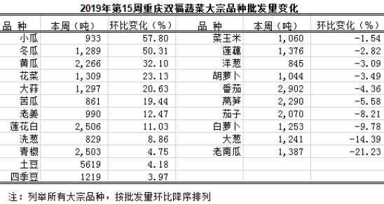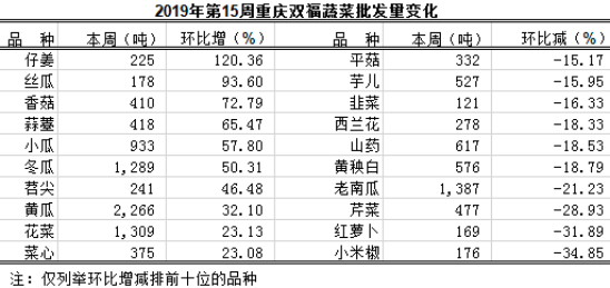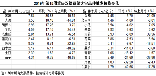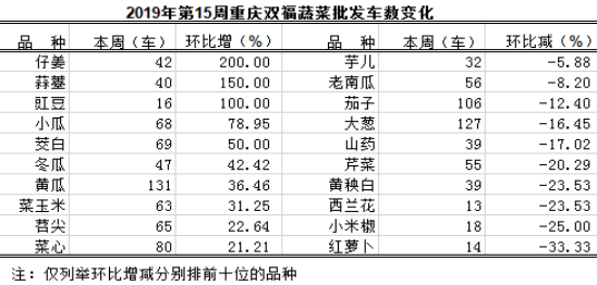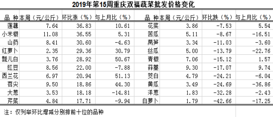重庆蔬菜批发交易周分析2019年第15期(总140期)