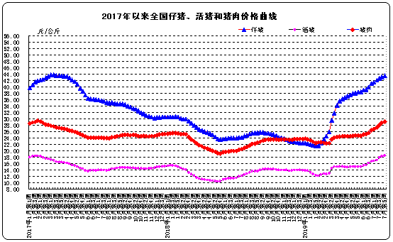 生猪价格。全国活猪平均价格18.48元/公斤,比前一周上涨1.4%,与去年同期相比(以下简称同比)上涨44.8%。江苏、天津、辽宁、吉林、山东、黑龙江、新疆等省份活猪价格下降,河南价格持平,其余省份价格上涨。华南地区活猪平均价格较高,为21.83元/公斤;西南地区较低,为16.28元/公斤。全国猪肉平均价格29.18元/公斤,比前一周上涨1.4%,同比上涨37.8%。辽宁、黑龙江、江苏等省份猪肉价格下降,山东价格持平,其余省份价格上涨。华南地区猪肉平均价格较高,为33.62元/公斤;西南地区较低,为26.72元/公斤。全国仔猪平均价格43.52元/公斤,比前一周上涨0.7%,同比上涨75.3%。江苏、贵州、四川、上海、湖北、辽宁、浙江、甘肃、黑龙江、福建等省份仔猪价格下降,天津、江西价格持平,其余省份价格上涨。东北地区仔猪价格较高,为55.32元/公斤;西南地区较低,为25.37元/公斤。
