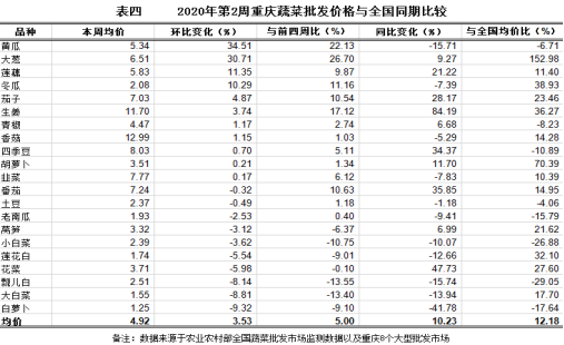 重庆农产品及农资价格周报2020年第2期(总576期)