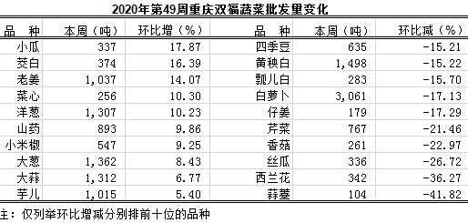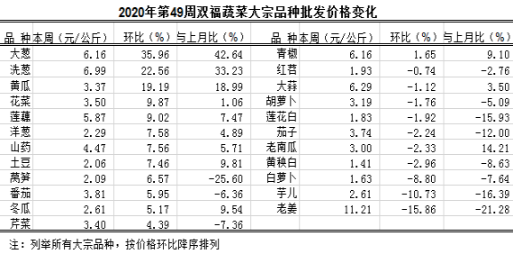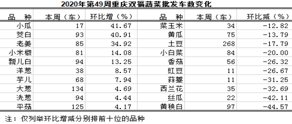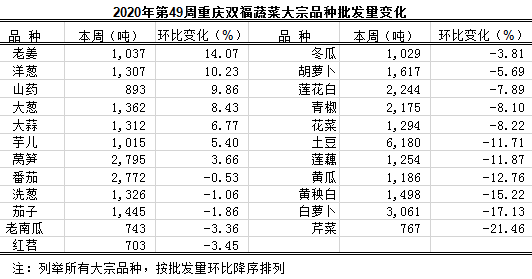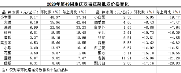 重庆蔬菜批发交易周分析2020年第49期(总226期)