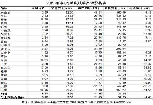 重庆农产品及农资价格周报2021年第4期(总631期)
