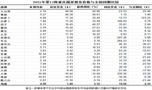 重庆农产品及农资价格周报2021年第13期(总640期)