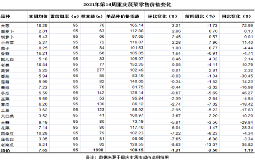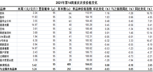 重庆农产品及农资价格周报2021年第14期(总641期)