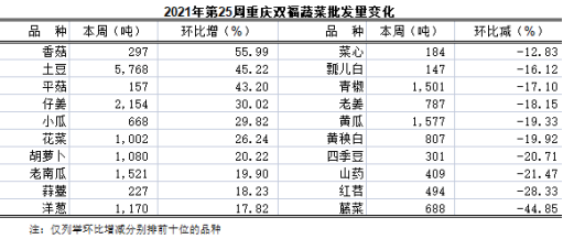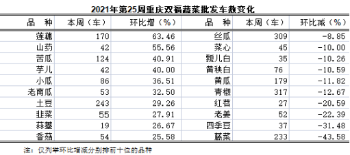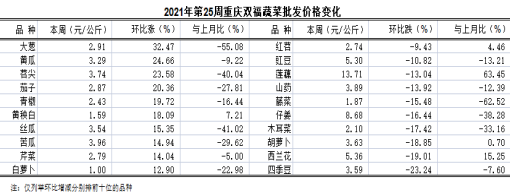 重庆蔬菜批发交易周分析2021年第25期(总255期)