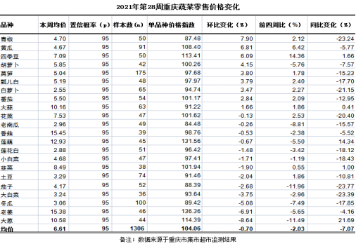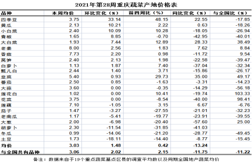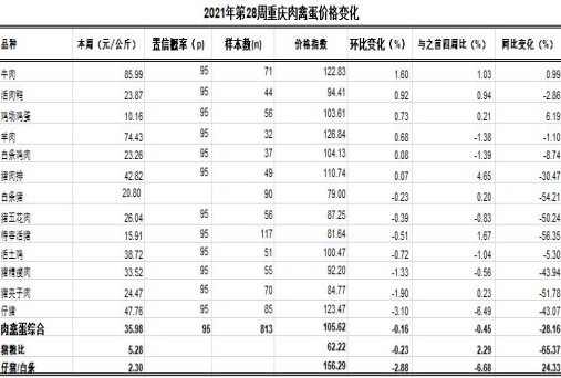 重庆市农产品及农资价格周报2021年28期(总655期)