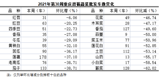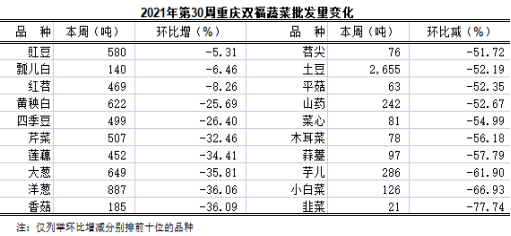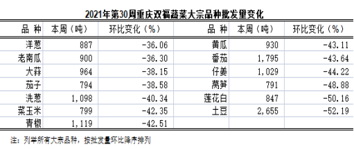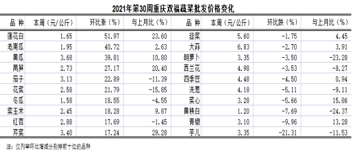 重庆蔬菜批发交易周分析2021年第30期(总260期)