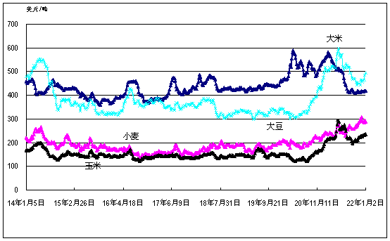 国际大宗农产品周均价格走势图(2014年1月至今)
