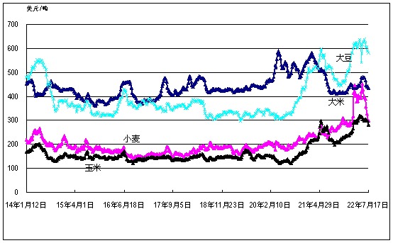 国际大宗农产品周均价格走势图(2014年1月至今)