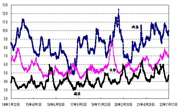 据农业农村部监测,2022年第28周(2022年7月11日—2022年7月17日,下同)“农产品批发价格200指数”为121.92(以2015年为100),比前一周升3.52个点,同比高12.66个点;“‘菜篮子’产品批发价格200指数”为122.79(以2015年为100),比前一周升4.14个点,同比高13.06个点。