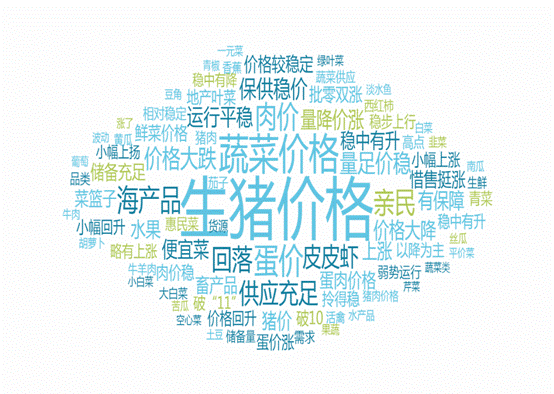 1.肉蛋价格小幅上涨。猪肉批发市场周均价每公斤29.09元,环比涨0.9%,同比高39.1%;牛肉每公斤77.06元,环比涨0.2%,同比高1.9%;羊肉每公斤67.13元,环比涨0.2%,同比低4.8%;白条鸡每公斤18.94元,环比涨1.1%,同比高13.0%。鸡蛋批发市场周均价每公斤10.83元,环比涨2.1%,同比高4.3%。