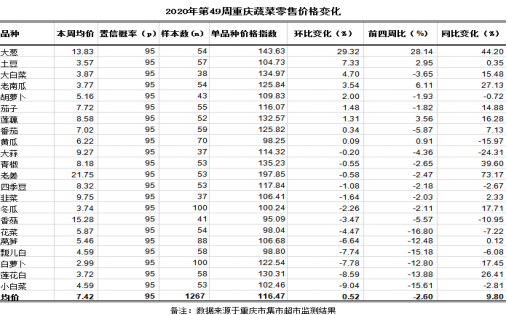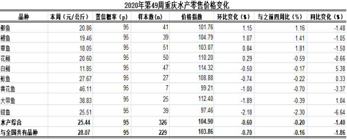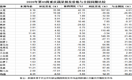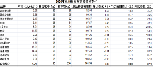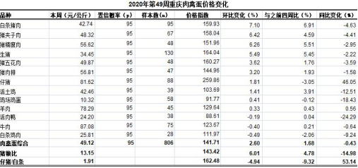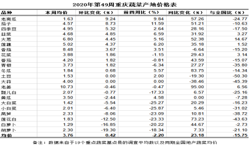 重庆农产品及农资价格周报2020年第49期(总623期)